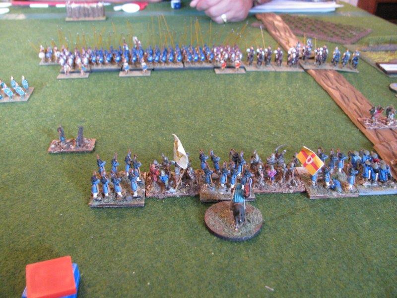 Because the Companions were on the Anglo-Irish Right, the loose order command of Thracians and Peltasts was on the left were facing Heavy Knights and Cavalry. Two Taxis of Pike were diverted to support them, but in the end that is all they did, provide support. They would have engaged the Knights, but were also surrounded by the Irish Nobles and Light Horse.