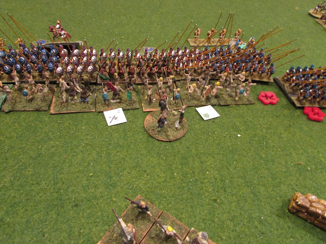 Well, the game is shaping up. Using their superior mobility, the Turks have turned the Anglo-Irish left flank, and are focusing all their knights on the right. The middle is held by massive amounts of missile armed foot troops, all with decent secondary weapons. The Turk doesn't look vulnerable anywhere. I suspect much of the foot are 'D's, interspersed with Jannisaries, usually Reg 'A'.