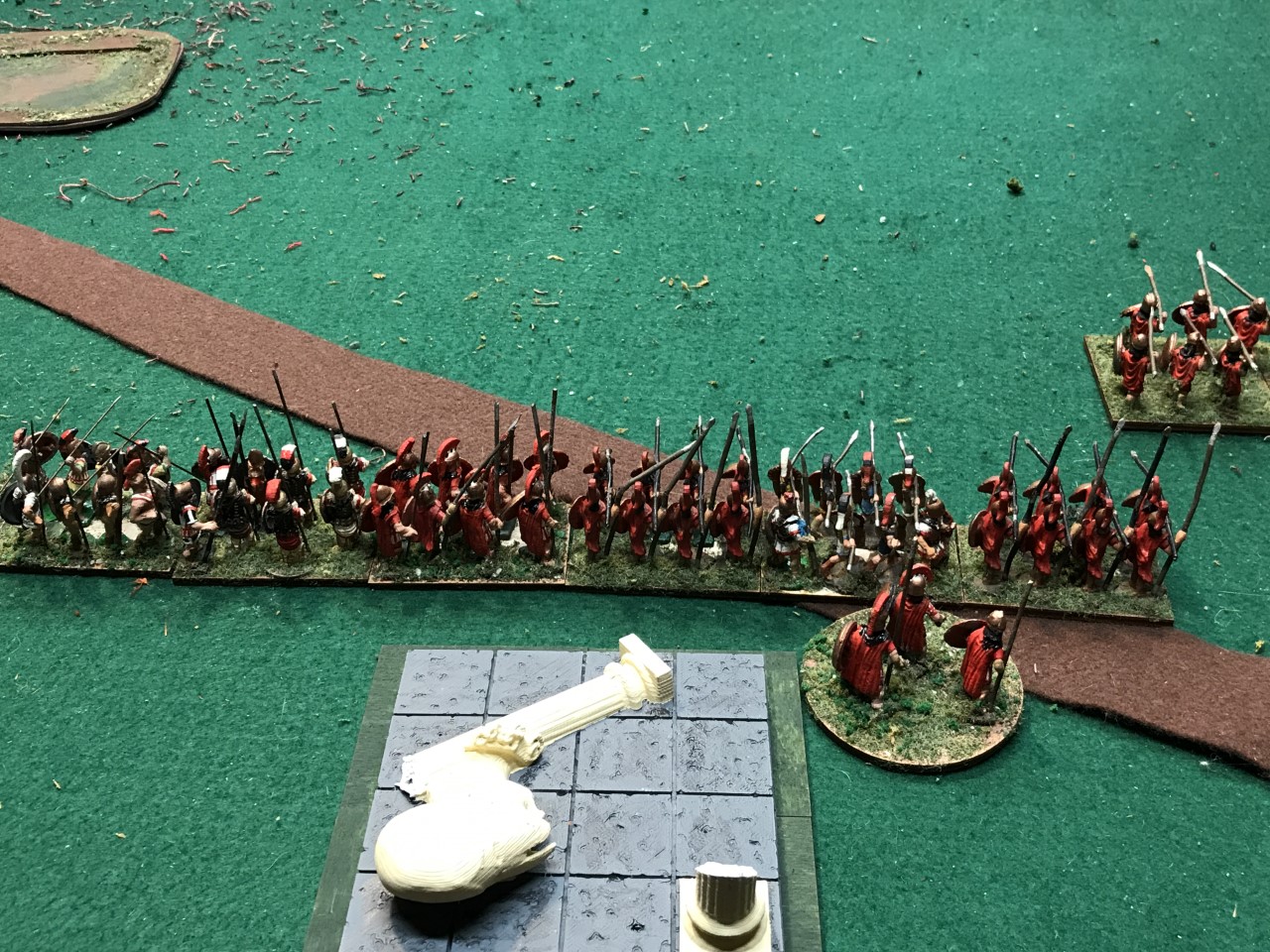 | Darreltios takes the left with 6 Heavy Spear and 2 Peltasts. |