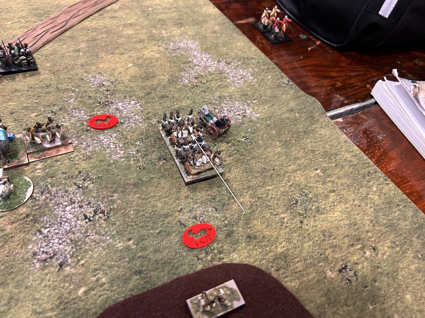 Too few command points. Caused by over extending the commands. The two MI Sword/Bow, who's mission was to cover the left flank was immediately out of command, and after that, only moved when the king had spare points. Which happened once. So they failed to cover his flank, and the Tuaregs took advantage of it.