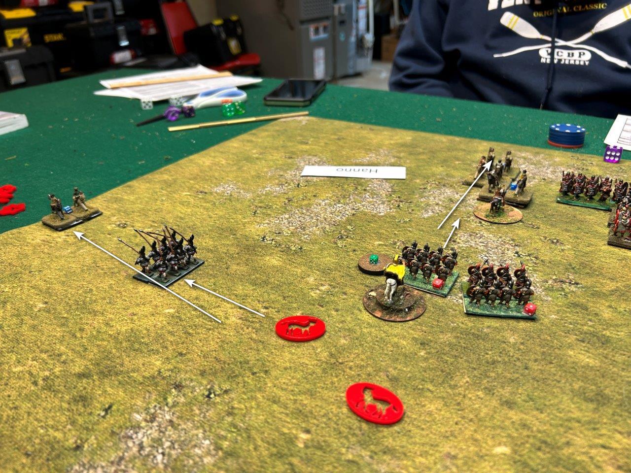 | Hasdrubal has lost a troop of horse, and maneuvers another for position. |