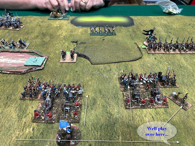 | Their center has a hill, and a couple units of foot with pole-arms. Their left with a good command of heavy horse with bow. |